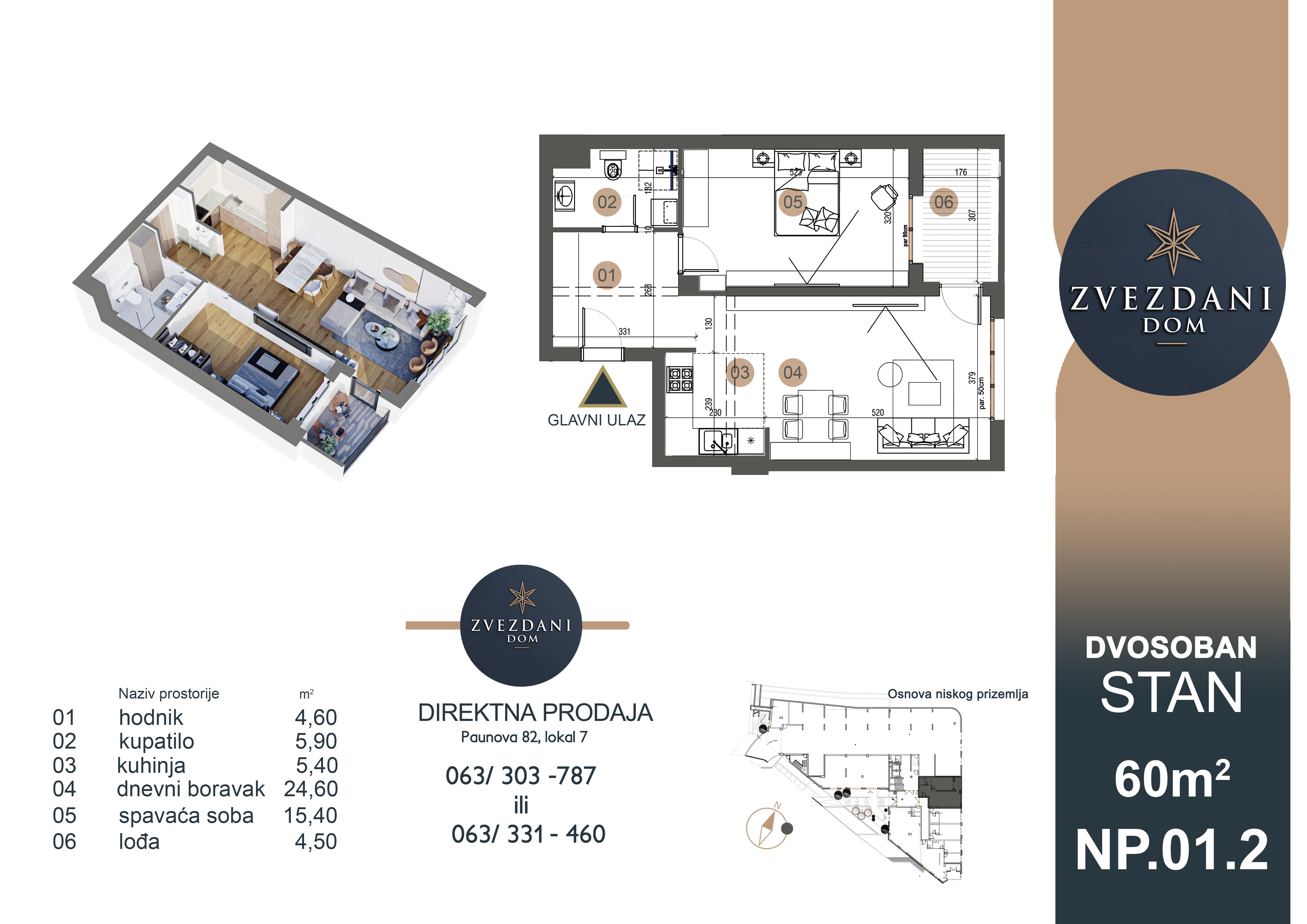 *Svi prikazani podaci, tekstovi, vizualni materijali i ilustracije služe isključivo u informativne svrhe. Sve slike, grafički prikazi i renderi su informativnog i ilustrativnog karaktera i mogu se razlikovati od konačnog izgleda. Investitor zadržava pravo izmene svih sadržaja, specifikacija, materijala i tehničkih detalja bez prethodne najave.