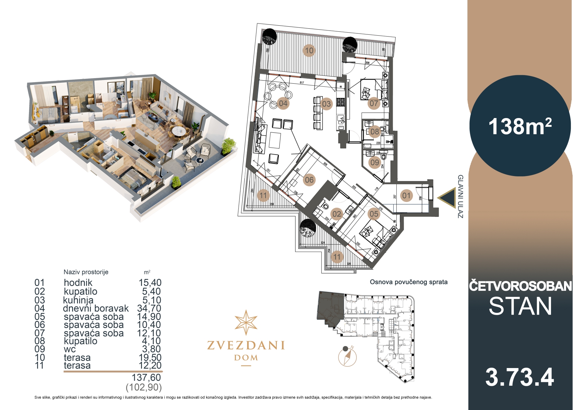 *Svi prikazani podaci, tekstovi, vizualni materijali i ilustracije služe isključivo u informativne svrhe. Sve slike, grafički prikazi i renderi su informativnog i ilustrativnog karaktera i mogu se razlikovati od konačnog izgleda. Investitor zadržava pravo izmene svih sadržaja, specifikacija, materijala i tehničkih detalja bez prethodne najave.