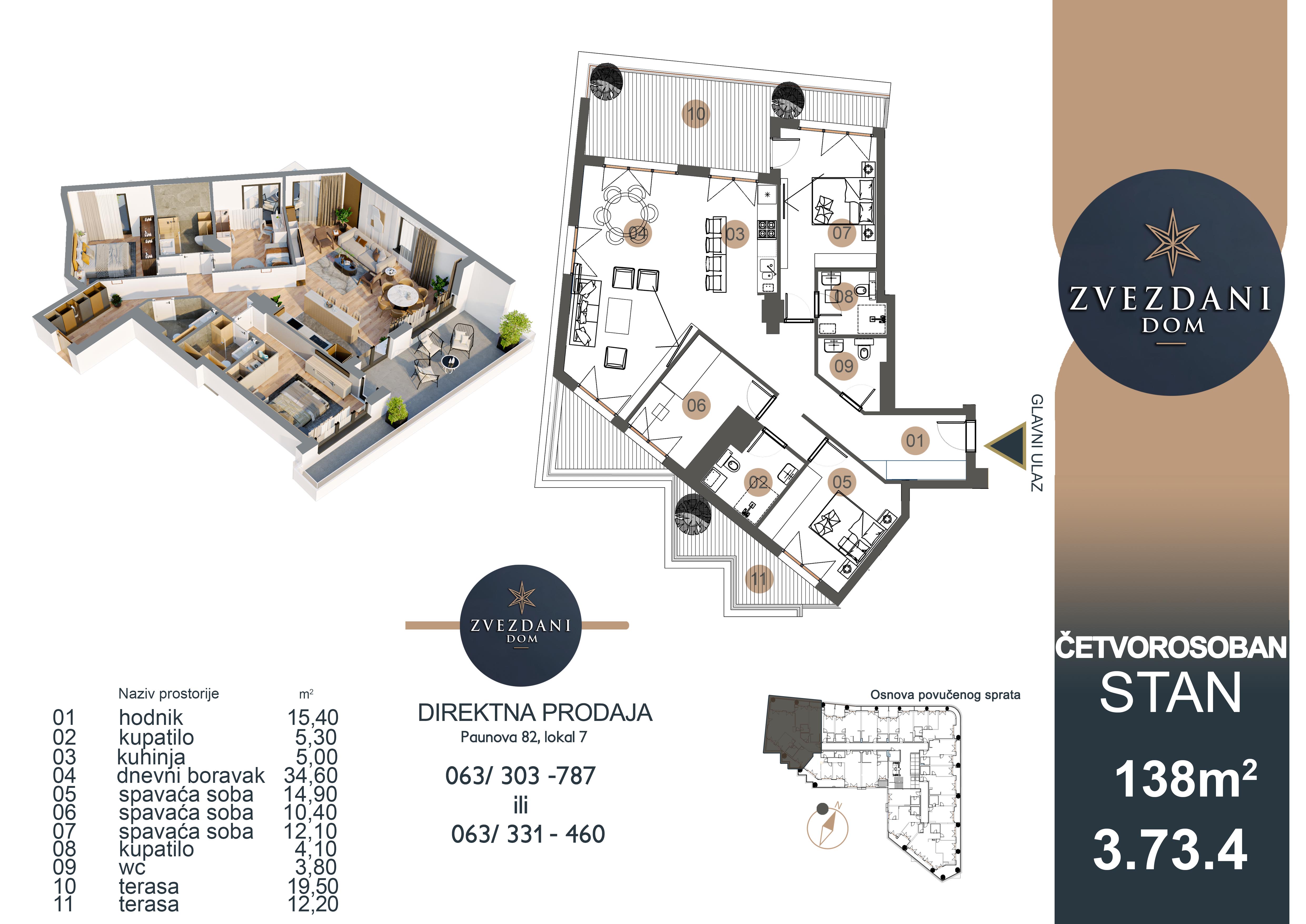*Svi prikazani podaci, tekstovi, vizualni materijali i ilustracije služe isključivo u informativne svrhe. Sve slike, grafički prikazi i renderi su informativnog i ilustrativnog karaktera i mogu se razlikovati od konačnog izgleda. Investitor zadržava pravo izmene svih sadržaja, specifikacija, materijala i tehničkih detalja bez prethodne najave.